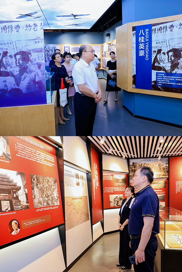 在主题展区,大家跟随讲解员的脚步依次参观了“星火初燃照八桂”“风起云涌闹革命”“中流砥柱御外侮”“浴血奋战迎解放”“铮铮铁骨英雄魂”等五个革命历史主题展,认真聆听广西黄日葵、韦拔群、龙启炎等老一辈革命家前赴后继投身革命的传奇故事,共同回顾广西革命的斗争历程,接受红色思想淬炼和红色革命精神洗礼。