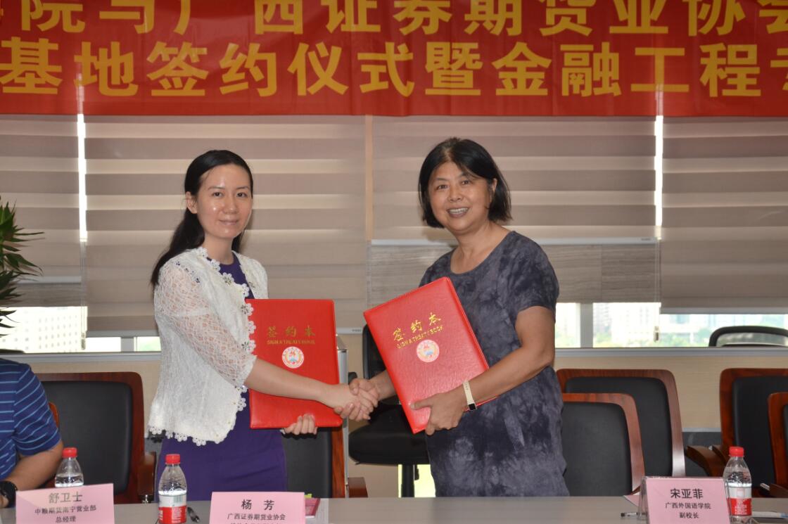 会上,广西外国语学院副校长宋亚菲介绍了学校的基本情况和办学特点,国际经济与贸易学院院长陈瑞生介绍了金融工程专业的人才培养方案。他们表示,希望通过校企合作设立就业基地,开展有针对性的课程和期货人才训练营,培养适应企业需求的应用型人才。与会的各期货会员单位相关负责人也纷纷分享了各自与高校合作培养期货行业人才的心得,成功的案例与务实的做法引发了老师们的兴趣。会议期间,与会人员畅所欲言、各抒己见,现场气氛活跃。协会还以此为契机与广西外国语学院签署了校企合作实习实践就业基地协议。